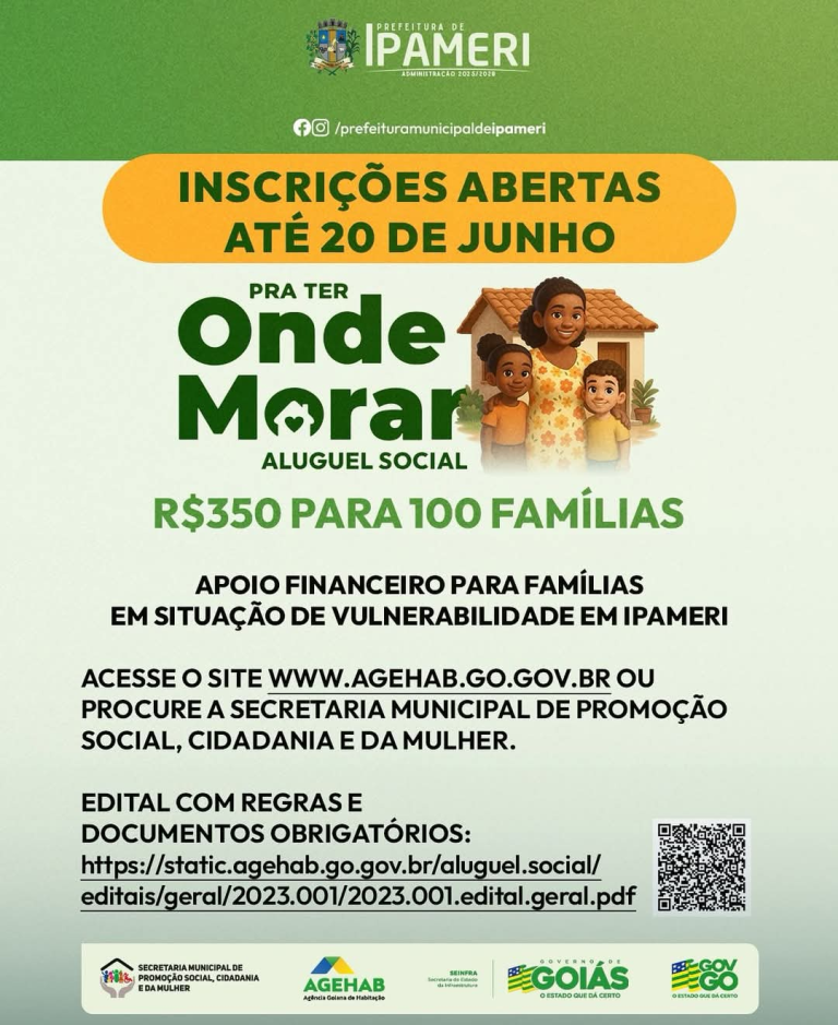 O município de Ipameri foi contemplado com 100 vagas no programa Aluguel Social, uma iniciativa do Governo de Goiás para apoiar famílias em situação de vulnerabilidade.