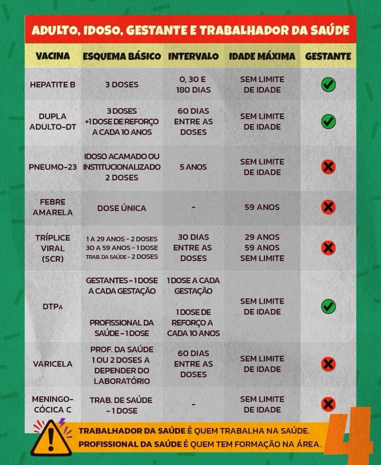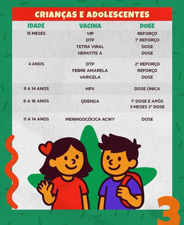Por ele você poderá se orientar de forma prática sobre vacinação de rotina para criança, adolescente, adulto, idoso, gestante, trabalhador da saúde, e também sobre as campanhas de vacinação e o teste do pezinho.