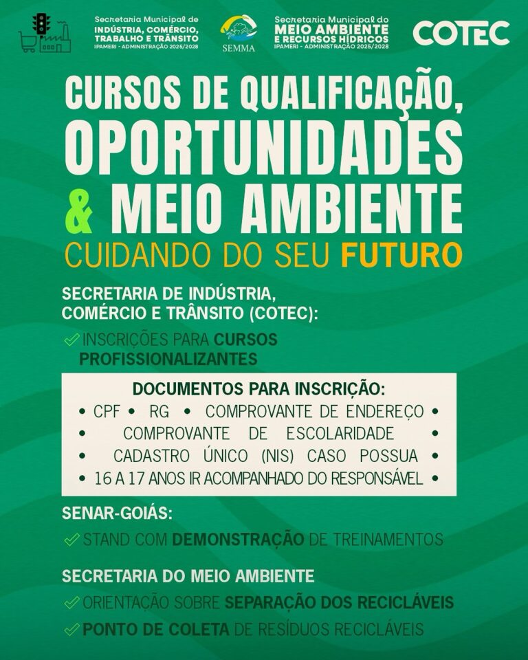 • Cursos em aberto: Operador de computador, corte e costura e maquiagem profissional