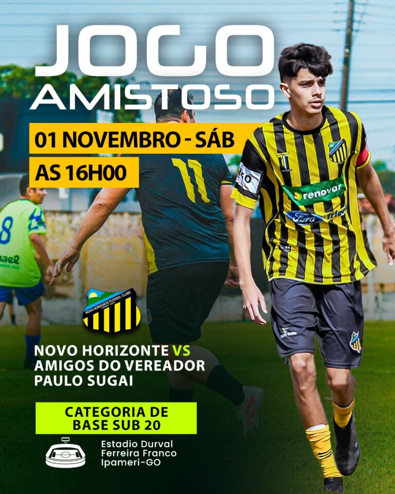 Jogo Amistoso Novo Horizonte base, versos Amigos do vereador Paulo SugaiDia29 de outubro de 2025EmNotícias Dia 01 de Novembro no Estádio Durval Ferreira Franco as 16 horas. Compartilhe Rafael Vaz Post anterior Presidente Alisson Rosa anuncia vagas oficiais do concurso público da Câmara Municipal de Ipameri Próximo Post #Convite | Reinauguração do Ginásio de Esportes Múcio Vaz Posts relacionados TERCEIRO 🥉🚲 DESAFIO SERRA DO PAREDÃO5 de março de 2026 Convite | Festival Food Truck & Morango em Ipameri! 🍓🚛2 de março de 2026 EncerramentoDoMês | Valorizando quem faz a diferença!2 de março de 2026