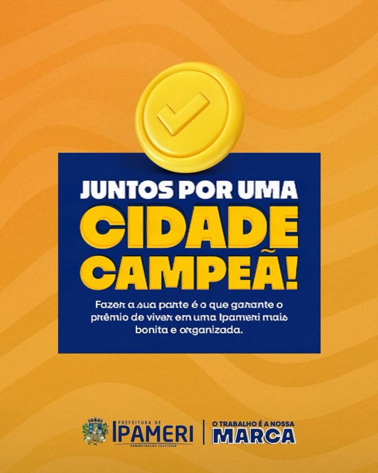 Vamos juntos fazer de Ipameri uma cidade campeã em limpeza e organização. 🏆