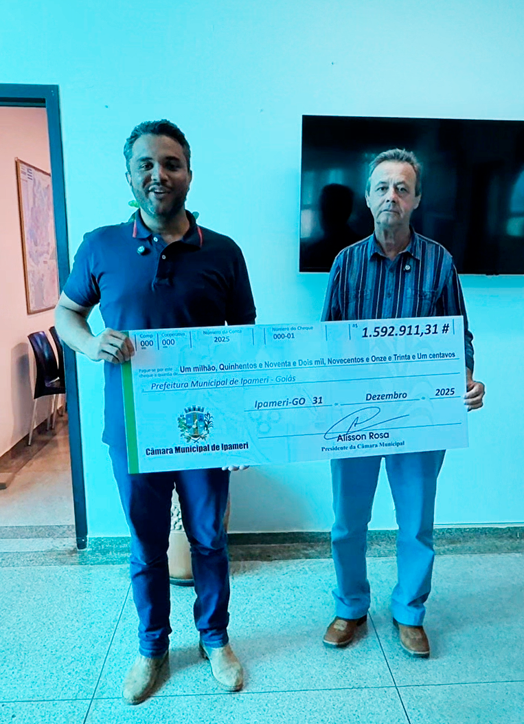 A Câmara Municipal de Ipameri reafirmou seu compromisso com a responsabilidade fiscal e o uso eficiente dos recursos públicos ao anunciar a devolução de R$ 1.592.911,31 ao Poder Executivo municipal. O montante é resultado da economia gerada ao longo do exercício financeiro de 2025, fruto de uma gestão planejada e consciente por parte do Legislativo.