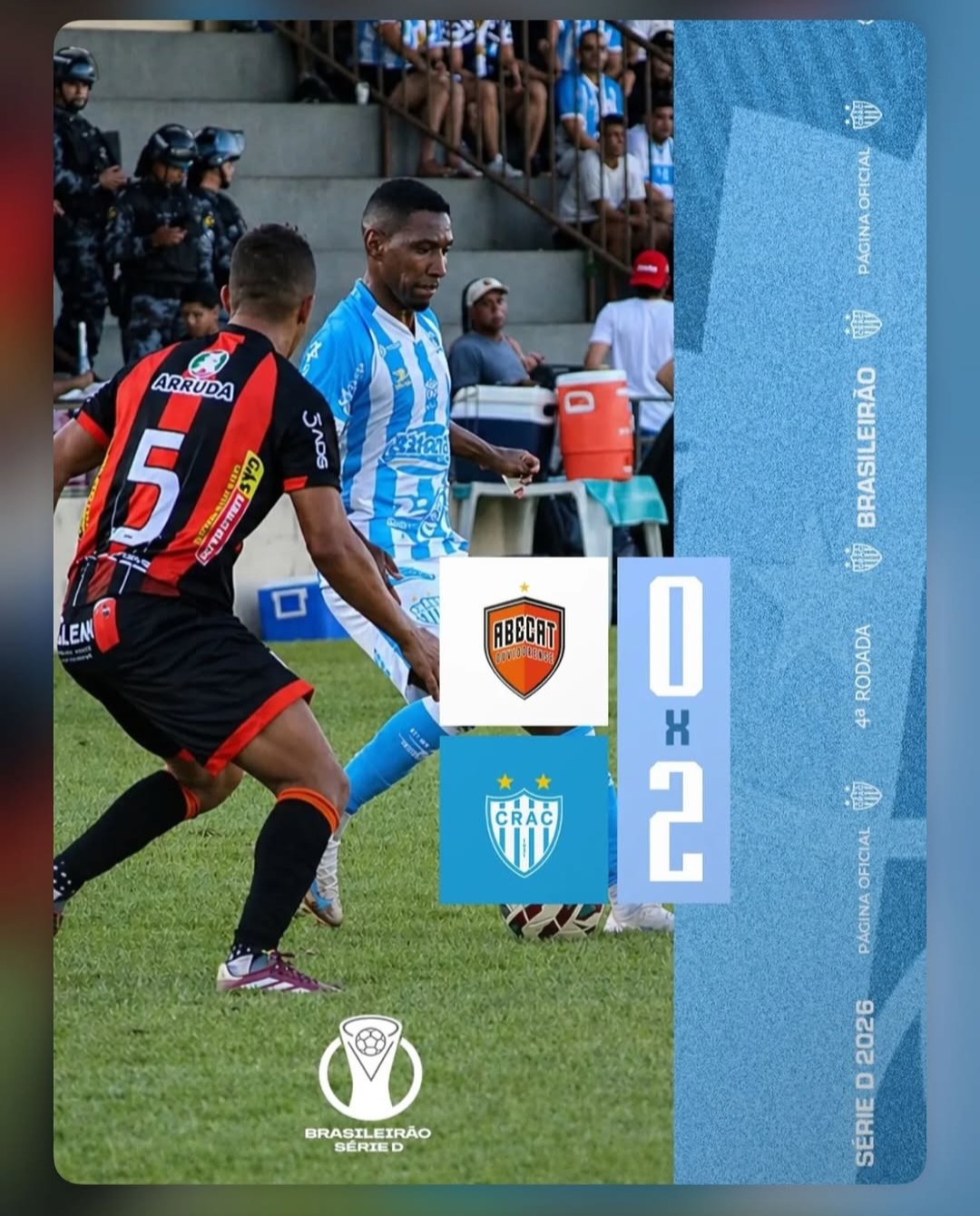 Segundo Tempo: A ABECAT tentou reagir no início da etapa final, mas o CRAC retomou o controle. Aos 13 minutos, o atacante Dudu aproveitou um rebote do goleiro Bruno para selar o placar em 2 a 0.