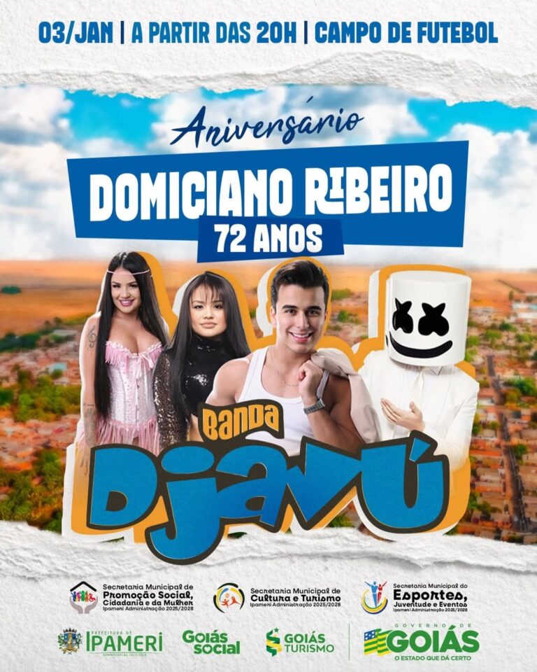 A Prefeitura de Ipameri, por meio das secretarias de Promoção Social, Cidadania e da Mulher, Secretaria de Esportes, Juventude e Eventos e Secretaria de Cultura e Turismo, com o apoio do Goiás Turismo, convida você e sua família para celebrar…