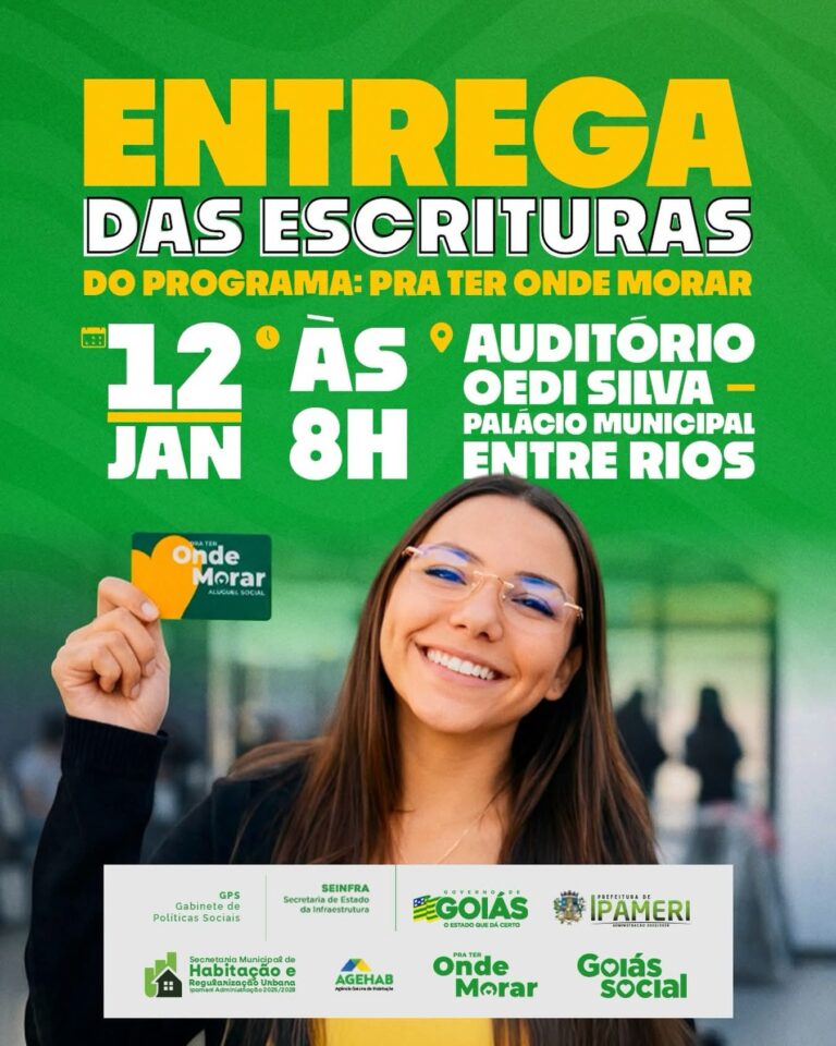 A Prefeitura de Ipameri, por meio da Secretaria Municipal de Habitação e Regularização Urbana, convida toda a população, autoridades e beneficiários para a solenidade de entrega de 43 escrituras do Programa Pra Ter Onde Morar, uma importante ação realizada em…